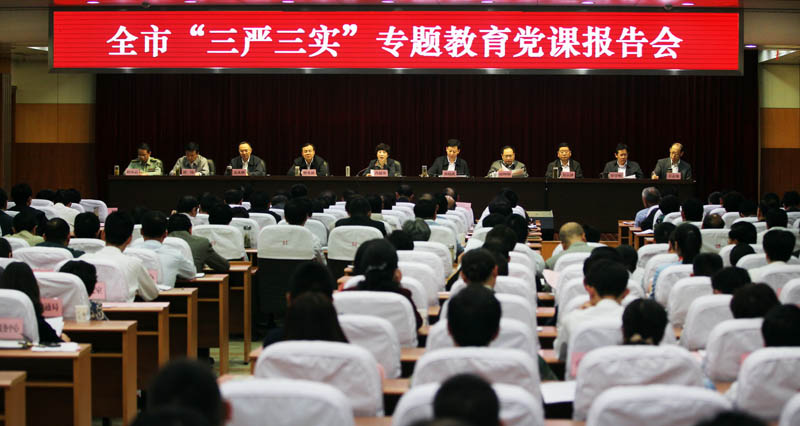 5月12日下午,市委召开“三严三实”专题教育党课报告会,对全市“三严三实”专题教育进行动员部署。市委书记、市人大常委会主任肖超英作专题教育党课报告。市委副书记、市长黄晓武主持报告会。