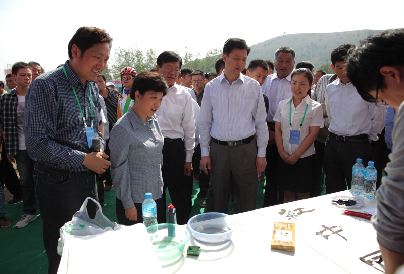 市领导观看书画家创作