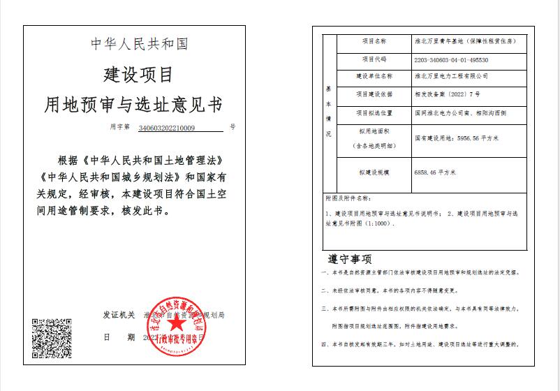 淮北万里青年基地(保障性租赁住房)建设项目用地预审与选址意见书 |